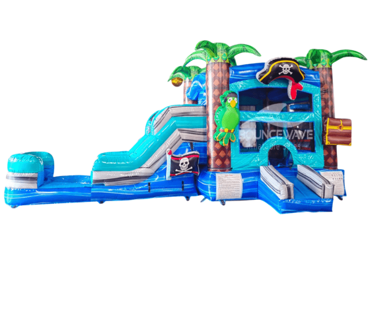 Our inflatable Combos are the best of both worlds bringing non-stop excitement to any party or event. They combine the thrill of a slide/waterslide and bounce house all in one! First, they can play basketball and jump around in the bouncy castle and then bounce their way down the connecting slide/waterslide on to a bumper pad or landing pool. Guests can climb, bounce and slide their way into fun, creating memories that last long after the party ends. Whether it's a backyard birthday, school event or summer celebration, our Combos are a safe, exciting way to beat the heat and keep everyone entertained! Renting ourCombo Slides only requires a water hose (if wet), electricity and an accessible water hook-up on the customer's part. We will provide a 50ft extension cord and stakes or sandbags to ensure they're secure and safe in mild winds and light rain. We're confident that no matter what water slide you lease from us, you will be pleased and will be looking to rent again in the future!