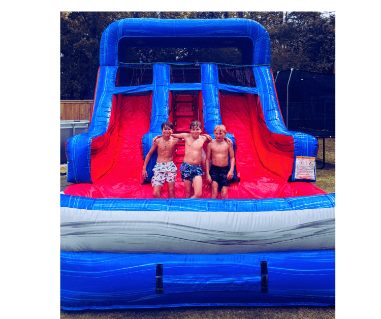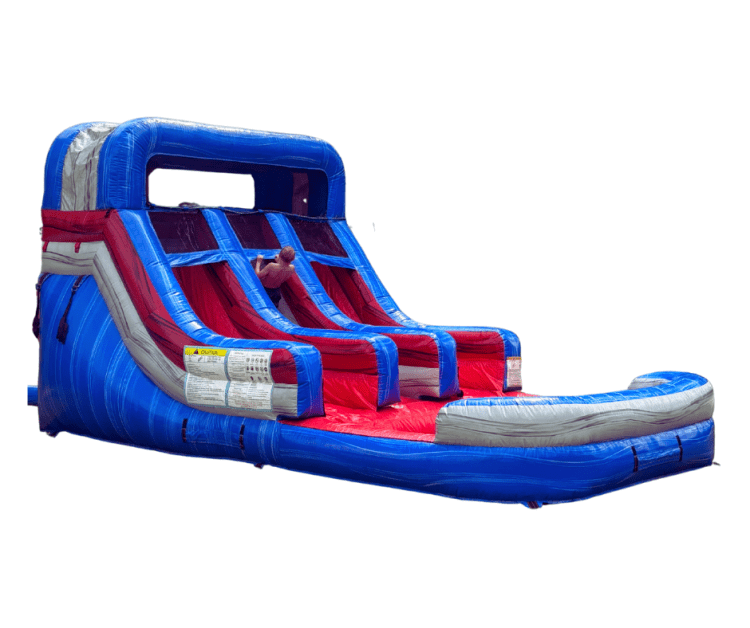 The 12ft Rip Curl waterslide is the ideal surfer slide for rippin a wave and making a big splash in small spaces. This slide sports dual lanes that accommodate two riders at a time and will fit in most yards. The Rip Curl also features a large landing pool and will entertain your party guests for hours.
