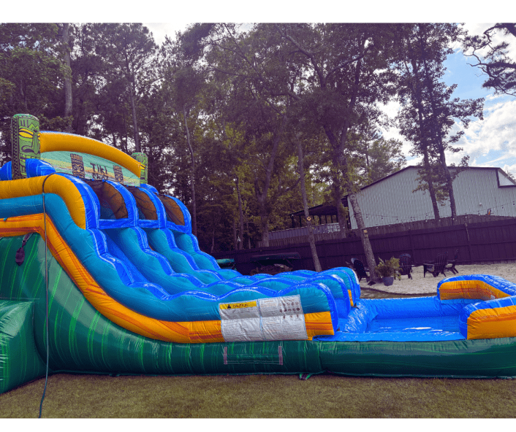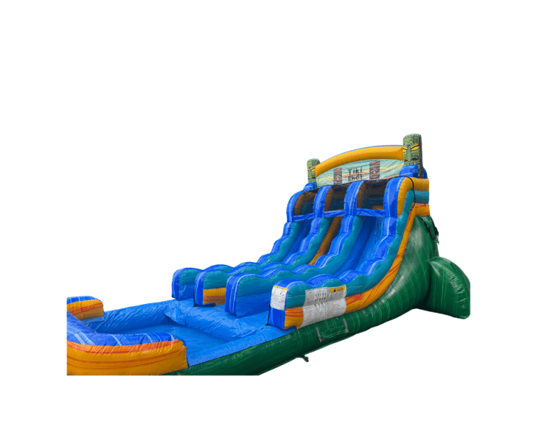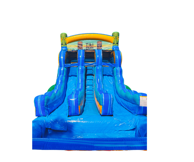 The islands are calling, will you answer the call? The Tiki Shot is the perfect waterslide for your party, gathering or luau. This 15ft dual lane center climb waterslide and landing pool features tiki statues and a tropical color scheme. Dual lane slides are perfect for any size events because they can accommodate multiple riders at once. Soak up the sun with a Hawaiian get away from the comfort of your own back yard.